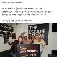 Eind september hadden wij een ''teambuildingsdag'' met collega's. We hadden in totaal 5 kamers en 1 buiten activiteit voor mensen die niet graag in een opgesloten kamer willen. Alle collega's waren super enthousiast en willen dit graag nog eens met z'n alle doen! Zij gaven aan dat Jason's Curse en Jack the Ripper het leukst waren! Bedankt voor de organisatie van the escaperoom. Jullie maken het bij binnenkomst al leuk door een ieder persoonlijk een hand te geven en de introductie die door jullie verteld wordt, zit ook een lichte spanning in. Leuk!